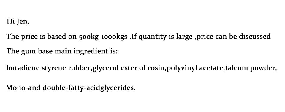 This is a list of ingredients given to me by a manufacturer that responded. These ingredients make up "Gum Base", that can be found in any average gum you find at markets...
