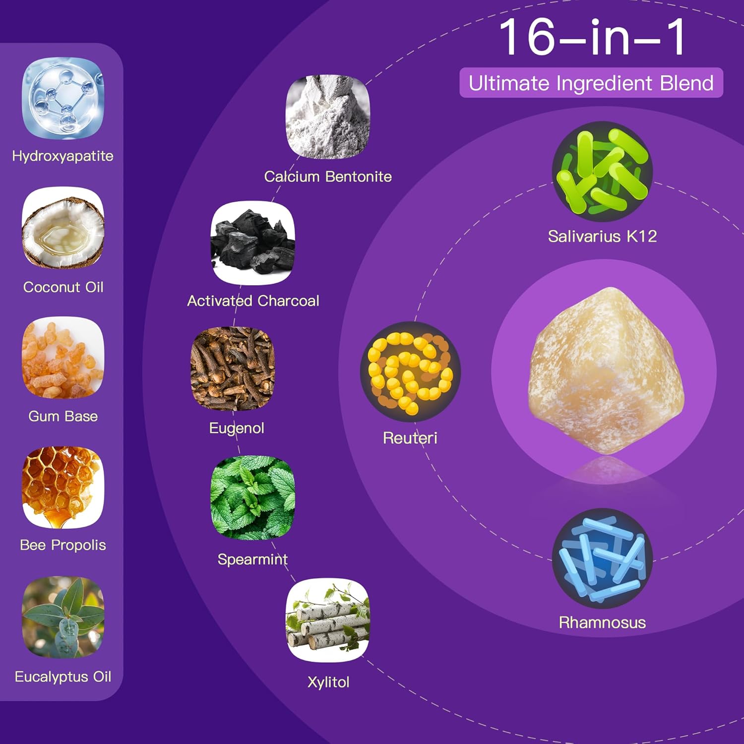 Boost enamel & oral health with our probiotic hydroxyapatite gum! Plastic-free, fresh breath for any occasion. Get your 72-piece pack now!